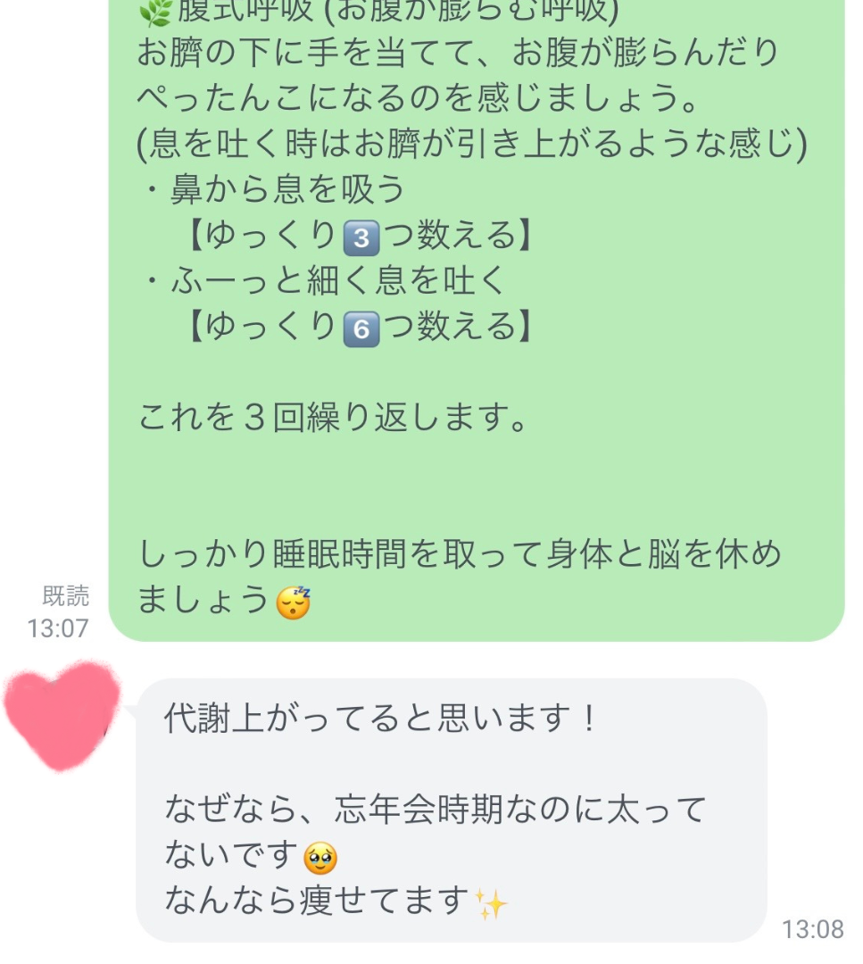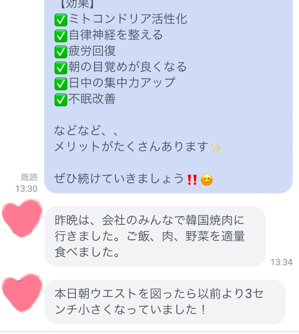 代謝が上がったのが自分でもわかり、冷え性だったのが全く寒さを感じなくなりました。